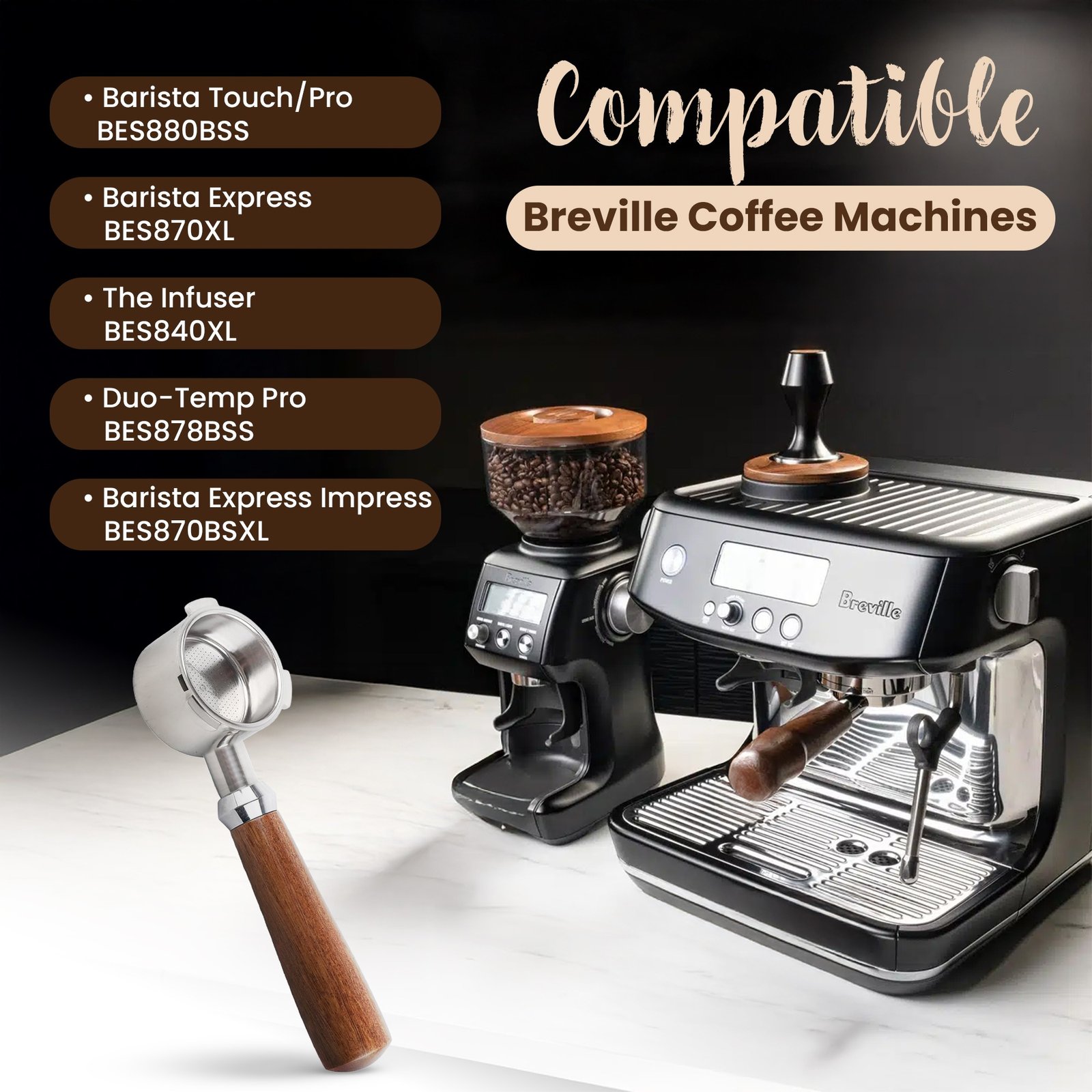 This 54mm bottomless portafilter is an essential accessory for any espresso machine, offering wide compatibility with popular models like the Barista Express (BES870), Pro, Touch, Bambino, and more. Serving as an easy-to-replace upgrade, this espresso portafilter enhances your brewing experience, ensuring rich, full-bodied espresso with every shot.